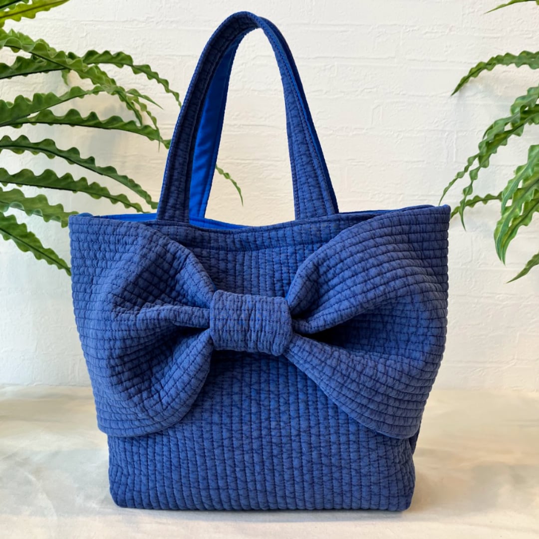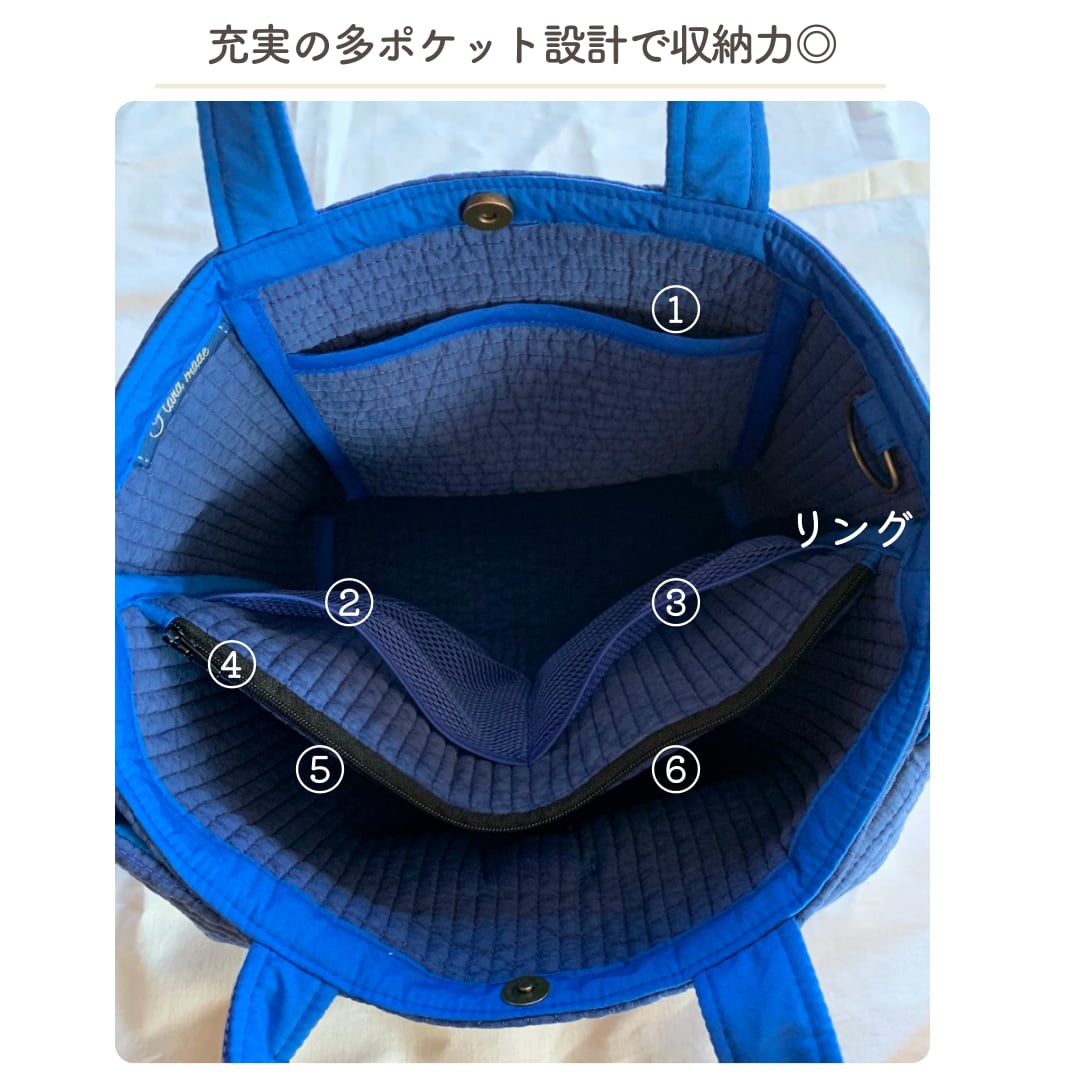 ビッグリボンヌビバッグ(ブルー)中仕切りあり+ポケット6個