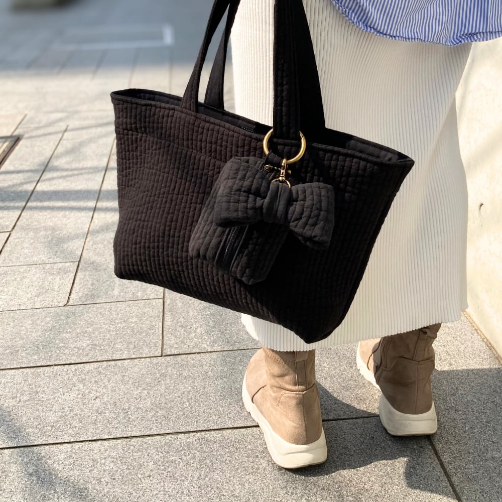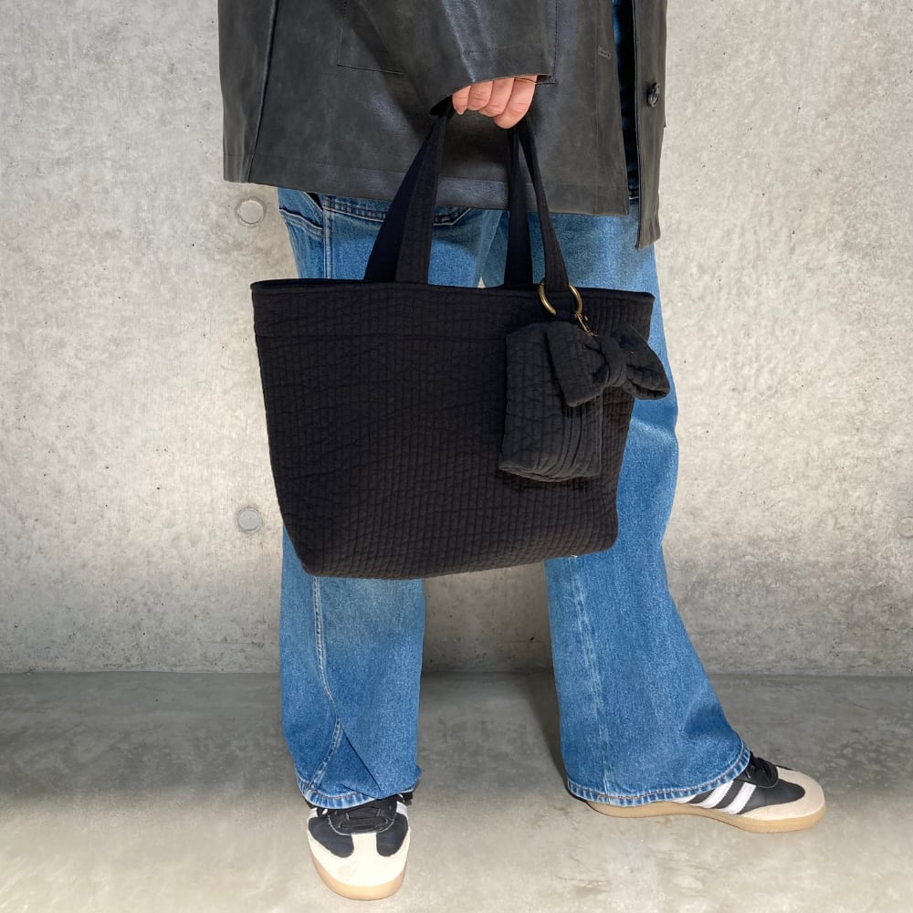 ミニポーチ×リボンチャーム付き ヌビバッグ ブラック