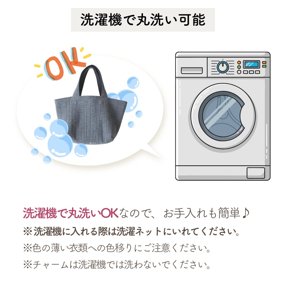 ・洗濯機で選択可能:バッグ自体はネットに入れて洗濯可能。お手入れも簡単です。※洗濯する際はチャームは外してください。