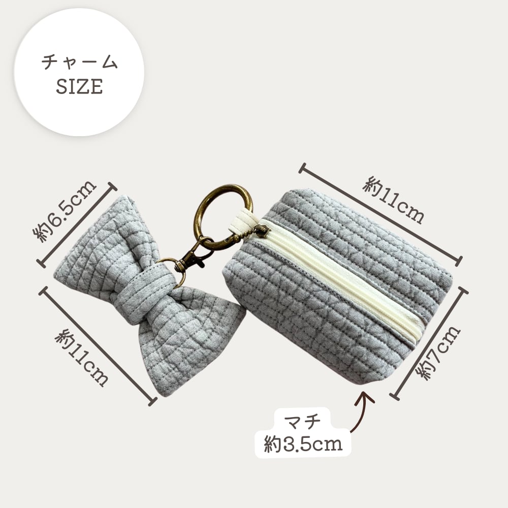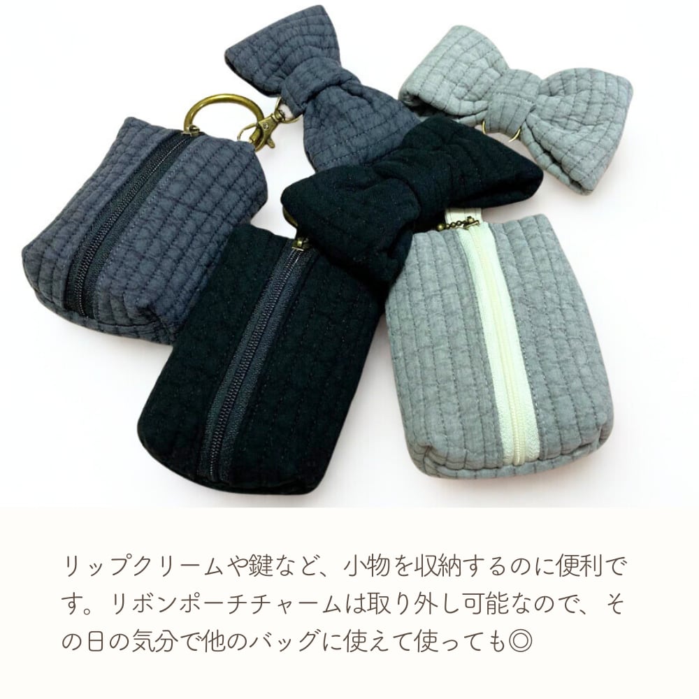 ・リボン×ポーチチャーム:ぽってりしたかわいいフォルムのリボンとあると便利なミニポーチが優秀アイテムです。